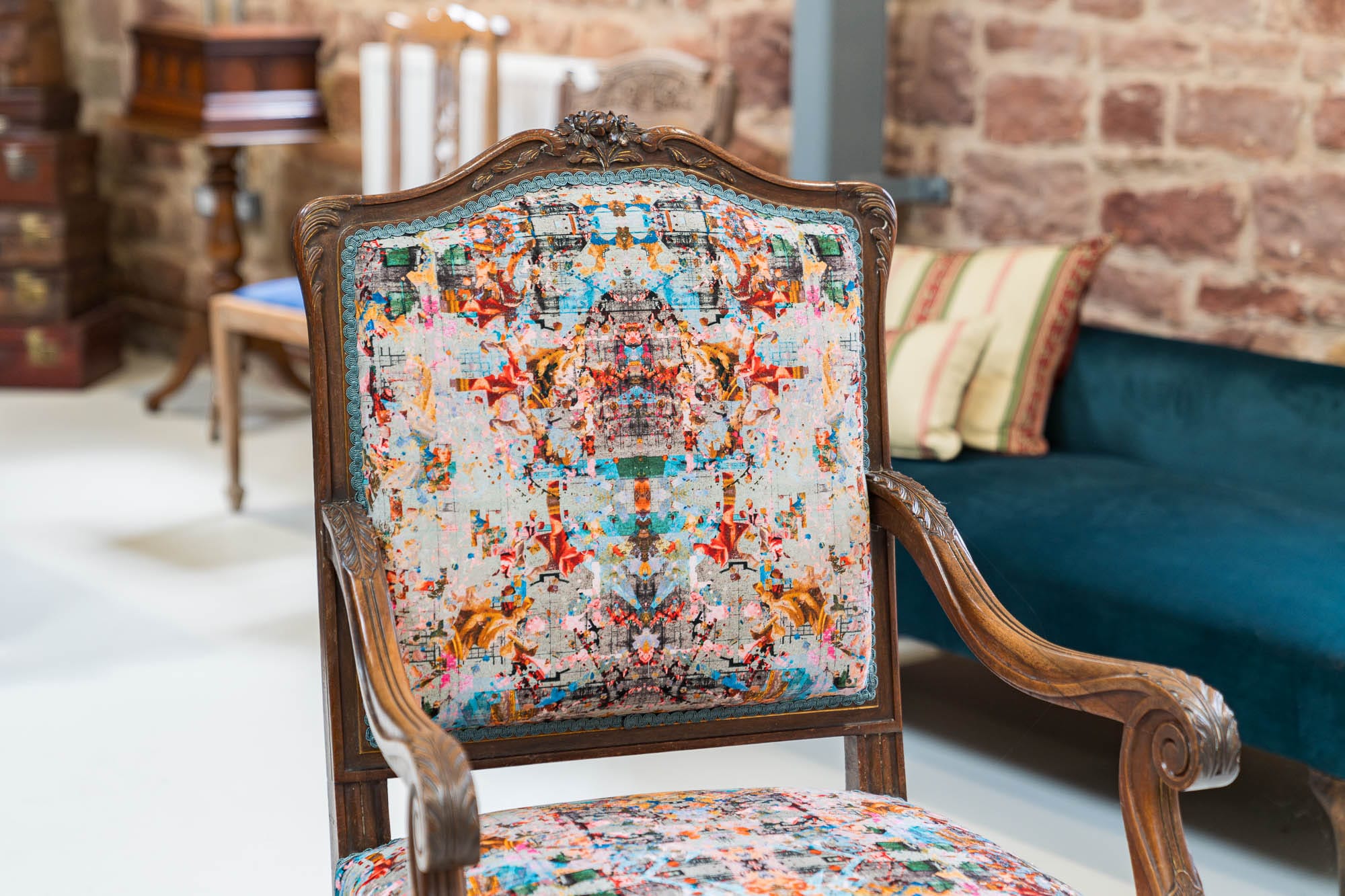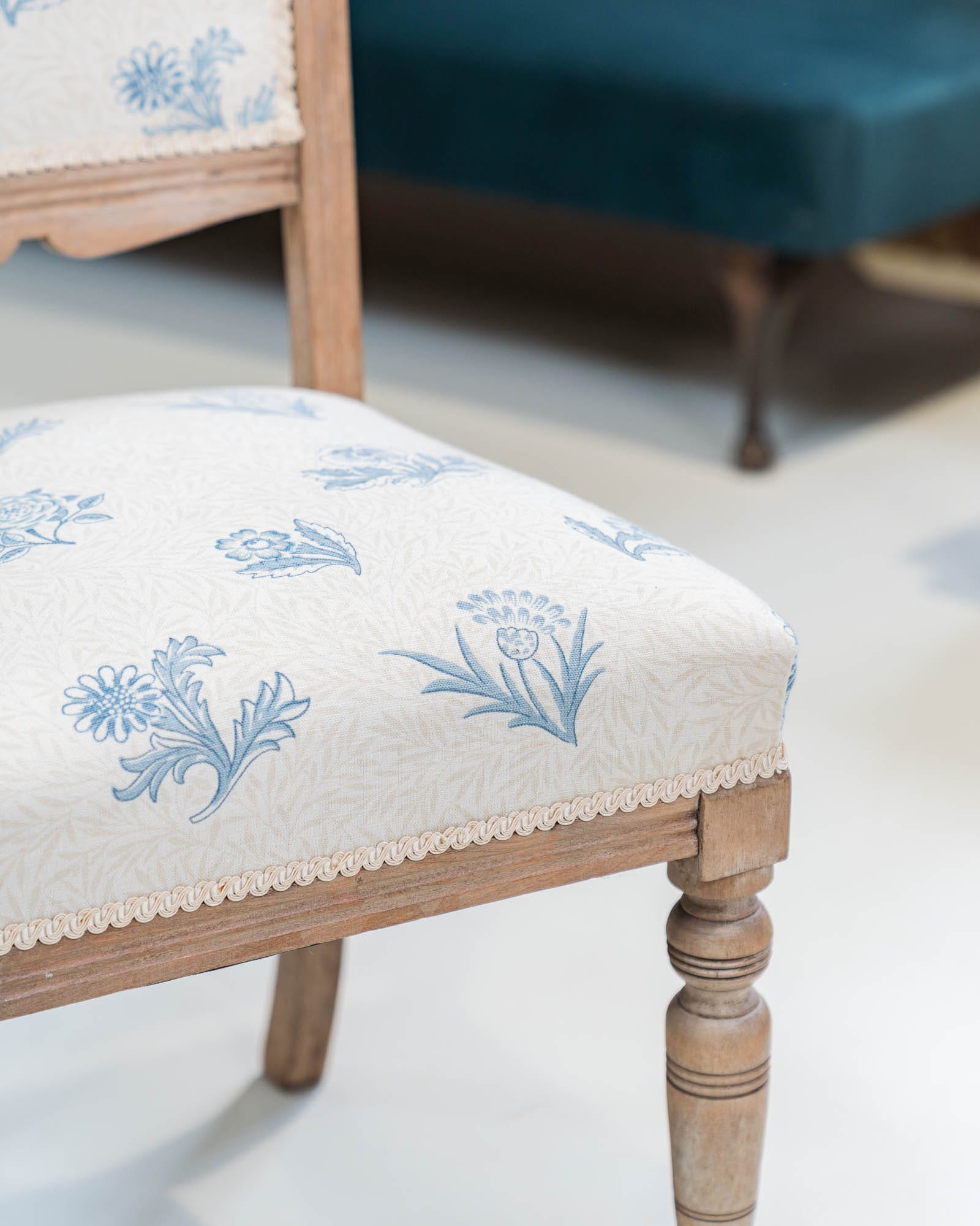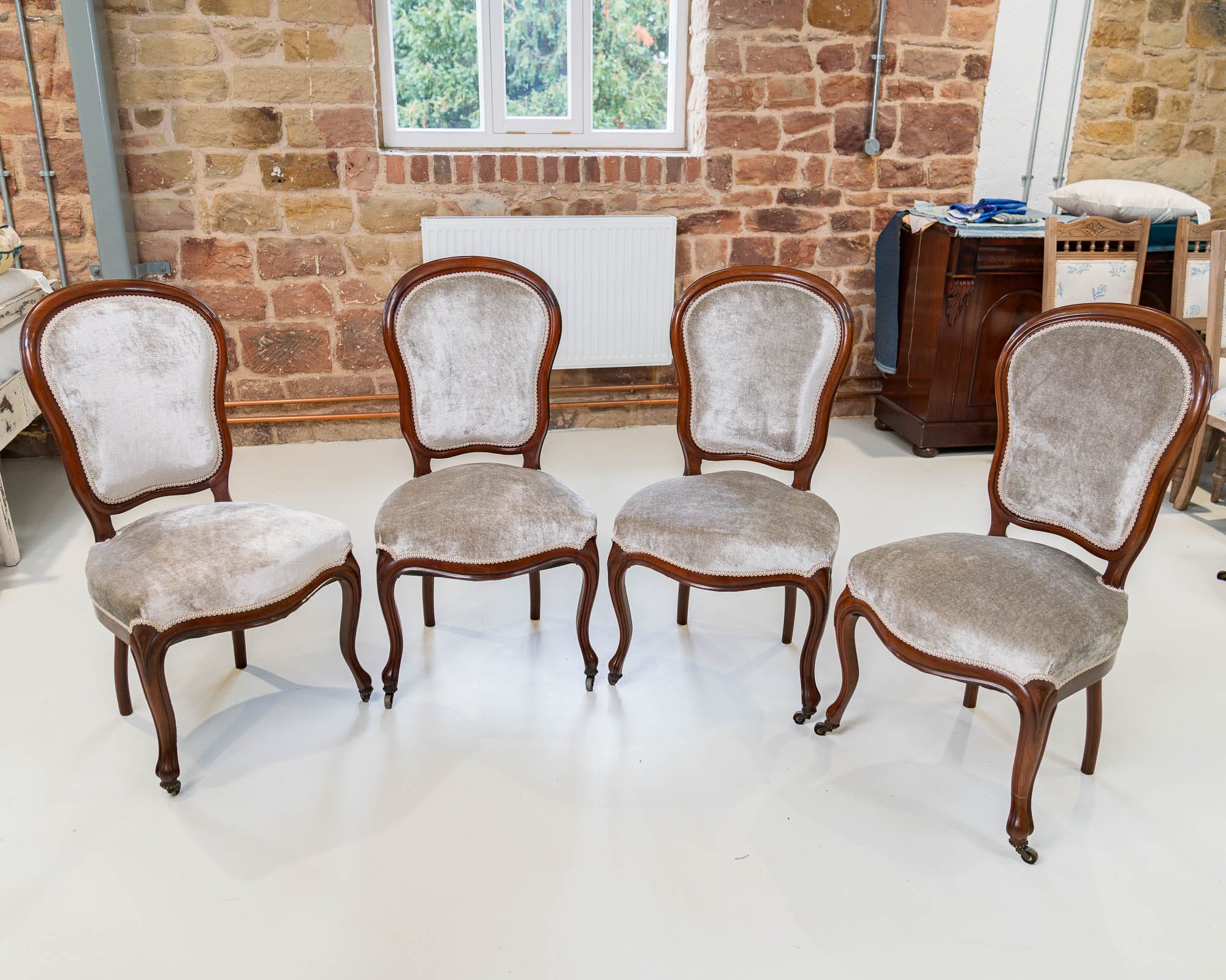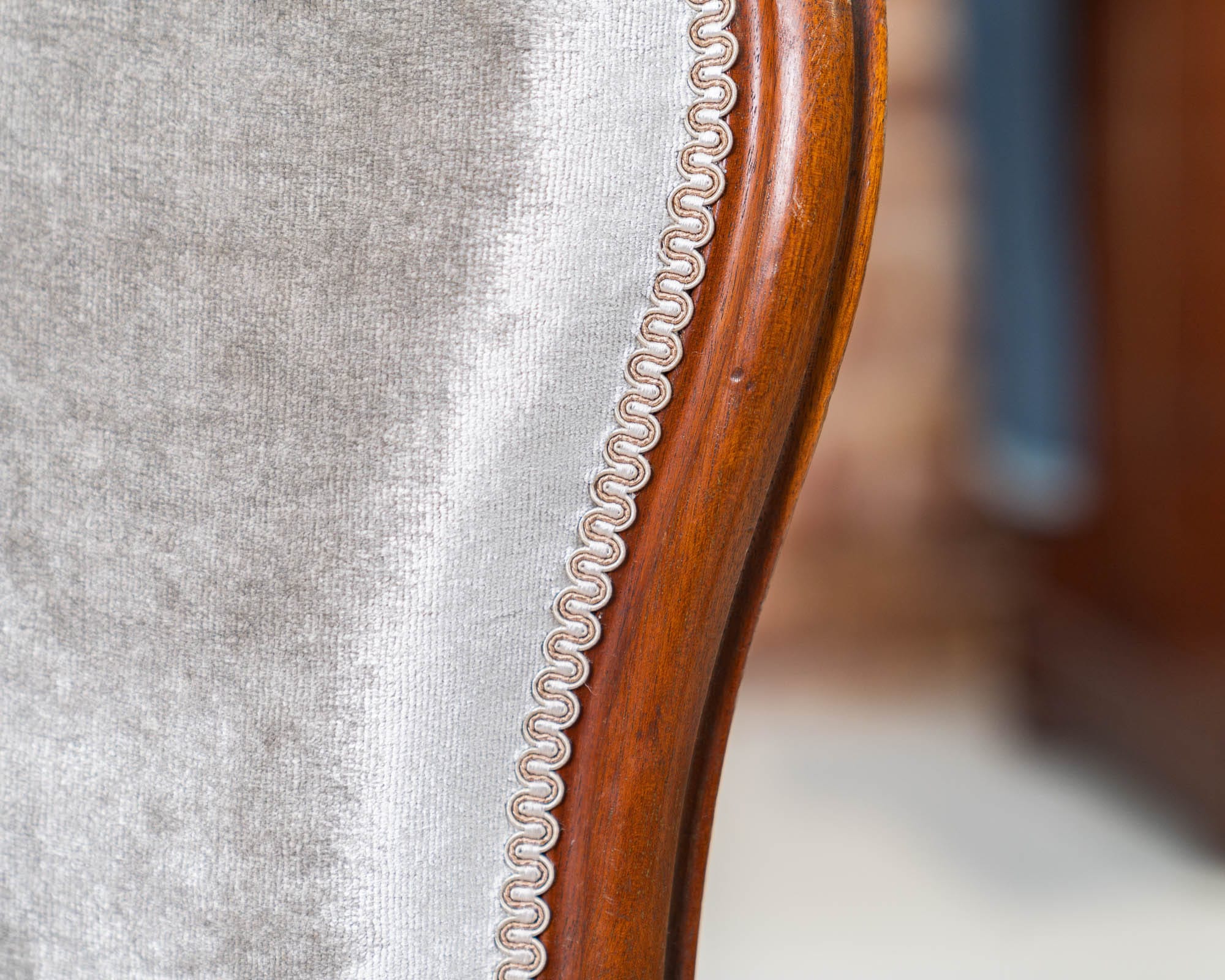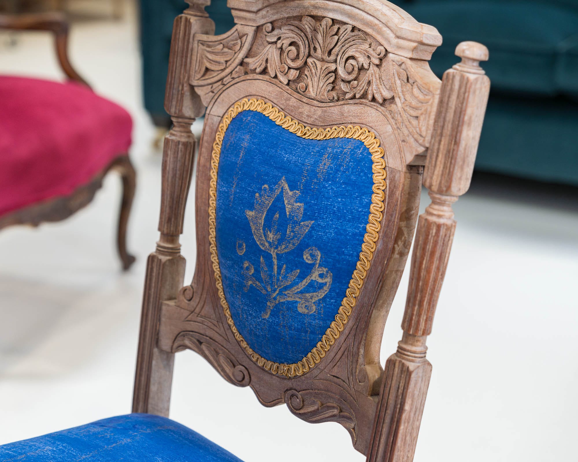 Our recent restoration projects include a diverse selection of antique chairs, each thoughtfully revived with luxurious velvet upholstery.