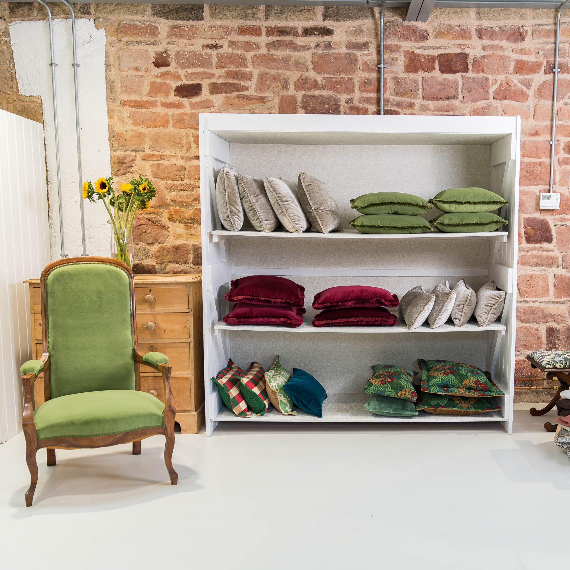 The French Voltaire chair has been revived using striking apple green velvet, making it an eye-catching addition to any space. To complement the chair, a range of apple green velvet cushions are also available, providing both elegance and comfort.